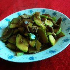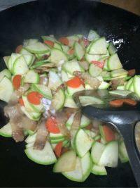 - 放入切好的角瓜片,翻炒均匀。